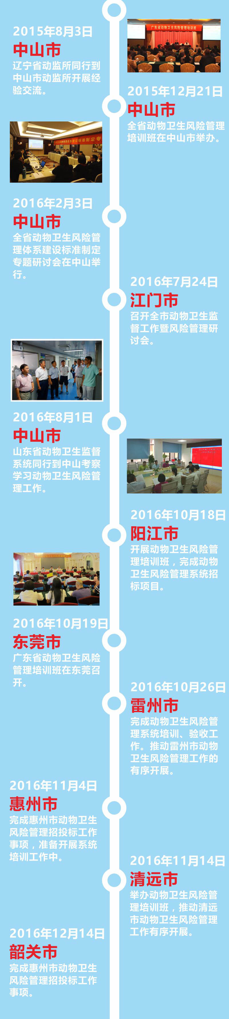 2014年動物衛(wèi)生風(fēng)險管理試點工作在中山市正式啟動,隨后在廣東省動物衛(wèi)生監(jiān)督所的帶領(lǐng)下,東莞、韶關(guān)、河源、惠州、陽江、清遠和雷州等地市相繼開展試點工作,組織執(zhí)法人員參加風(fēng)險管理培訓(xùn)班。2015年動物衛(wèi)生風(fēng)險管理系統(tǒng)在青島市通過全國動物衛(wèi)生風(fēng)險評估專家委員會的鑒定。短短兩年時間內(nèi),動物衛(wèi)生風(fēng)險管理試點遍布廣東省內(nèi) 8個地市。這充分說明動物衛(wèi)生風(fēng)險管理系統(tǒng)的應(yīng)用推廣取得了階段性的成功。廣東省農(nóng)業(yè)廳和廣東省動物衛(wèi)生監(jiān)督所對此給予了高度肯定,并表示,動物衛(wèi)生風(fēng)險管理系統(tǒng)的建立有效提高了工作效率,降低了行政成本,提升了物衛(wèi)生的風(fēng)險控制能力和監(jiān)督管理水平,應(yīng)該在全省范圍內(nèi)推廣。