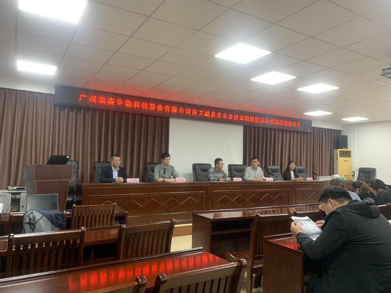 在捐贈(zèng)儀式上,廣州瑞森生物科技股份有限公司向天峨縣捐贈(zèng)先進(jìn)檢測(cè)儀器設(shè)備共5套,價(jià)值25萬(wàn)元。表達(dá)了瑞森生物公司對(duì)廣西紅色革命老區(qū)“中國(guó)長(zhǎng)壽之鄉(xiāng)”天峨縣的熱心支持,旨在希望未來(lái)能夠更好的為革命老區(qū)在食品安全快檢監(jiān)督工作開(kāi)展方面提供技術(shù)保障和優(yōu)質(zhì)服務(wù),為天峨縣老百姓能夠吃上綠色、安全、放心的食用農(nóng)產(chǎn)品貢獻(xiàn)企業(yè)的一份力量。