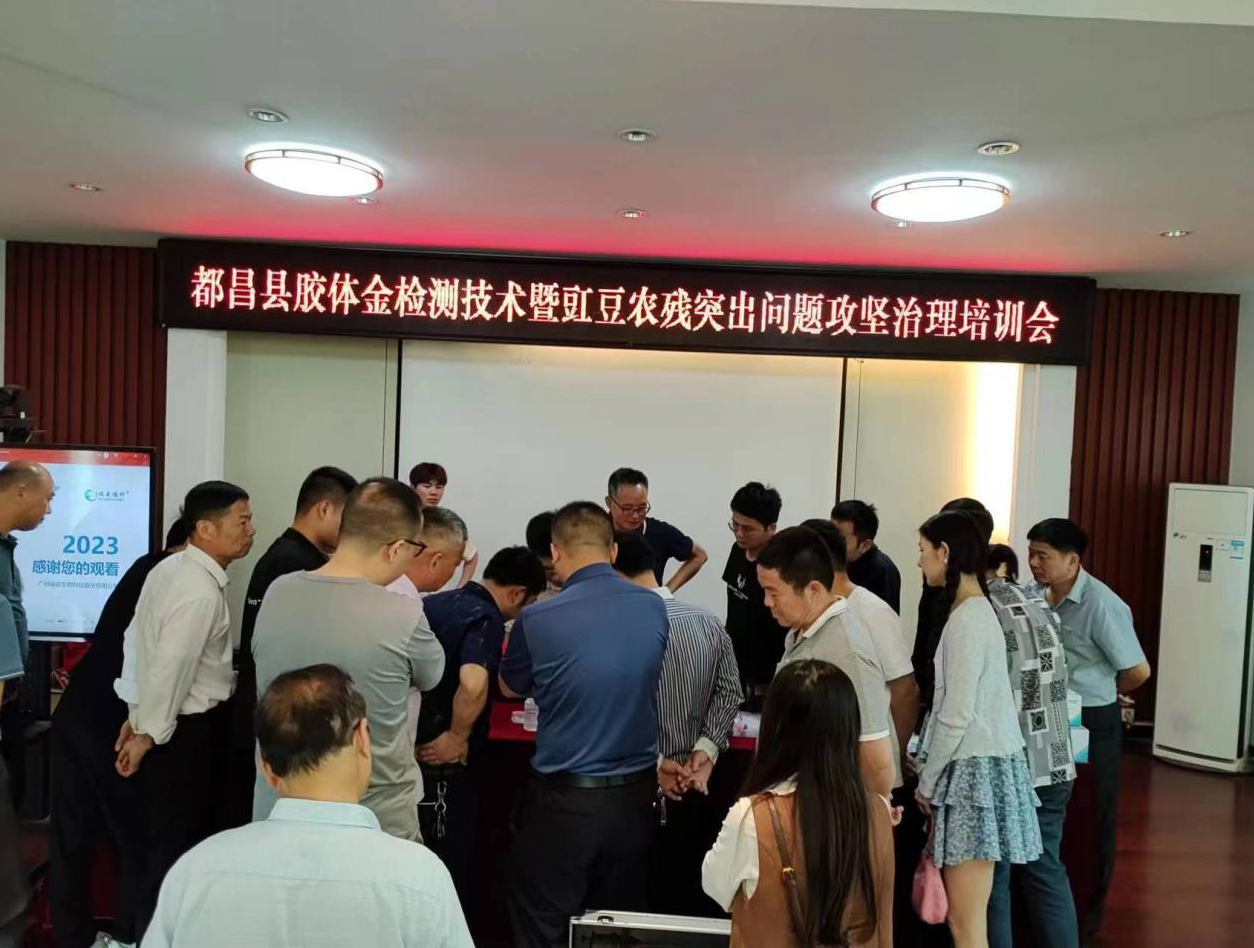 為確保全縣農(nóng)產(chǎn)品質(zhì)量安全,針對豇豆農(nóng)殘突出問題進行攻堅治理,大力推進農(nóng)產(chǎn)品質(zhì)量安全監(jiān)管相關(guān)工作,江西省都昌縣農(nóng)產(chǎn)品質(zhì)量安全監(jiān)管站于2023年5月26日在縣農(nóng)業(yè)農(nóng)村局農(nóng)業(yè)大樓7樓會議室舉辦“2023年都昌縣膠體金檢測技術(shù)暨豇豆農(nóng)殘突出問題攻堅治理培訓(xùn)會”。都昌縣各鄉(xiāng)鎮(zhèn)分管領(lǐng)導(dǎo)、各鄉(xiāng)鎮(zhèn)農(nóng)產(chǎn)品質(zhì)量安全專職監(jiān)管員及相關(guān)檢測站工作人員、廣州市瑞森生物科技股份有限公司相關(guān)領(lǐng)導(dǎo)及技術(shù)培訓(xùn)同事參與了此次會議。
