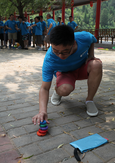 由于當(dāng)日氣溫比較炎熱,室外拓展進(jìn)行了團(tuán)隊塔、愛的傳遞等運(yùn)動量低但需要團(tuán)隊合作才能過關(guān)的項(xiàng)目。為了能完成教官布置的挑戰(zhàn),各小隊都能緊密協(xié)作,合理分工,整個挑戰(zhàn)過程中除了環(huán)環(huán)相扣的團(tuán)隊合作,也不乏個人智慧的閃現(xiàn)。