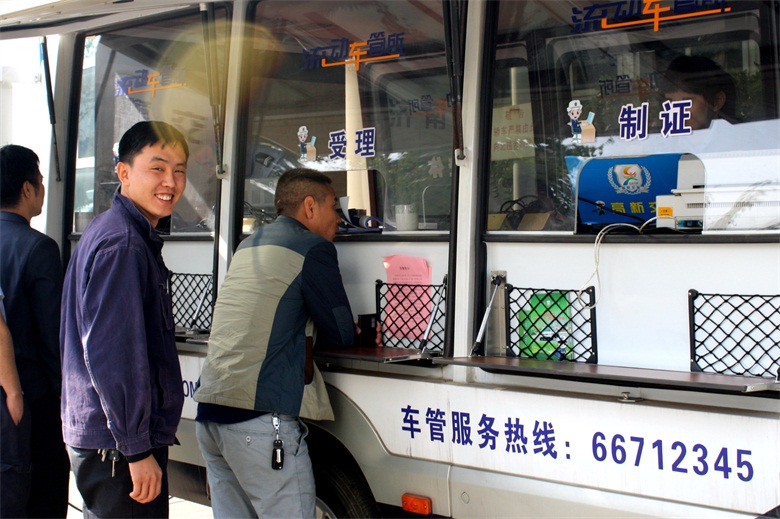 10月15日上午9點(diǎn)30分,服務(wù)車開進(jìn)濟(jì)南天辰鋁機(jī)股份有限公司,現(xiàn)場為企業(yè)員工辦理駕駛證、行駛證和機(jī)動(dòng)車年檢業(yè)務(wù)。據(jù)統(tǒng)計(jì),“流動(dòng)車管所”共為企業(yè)150余名員工辦理了駕駛證年檢業(yè)務(wù),發(fā)放宣傳材料、解答咨詢100余次。