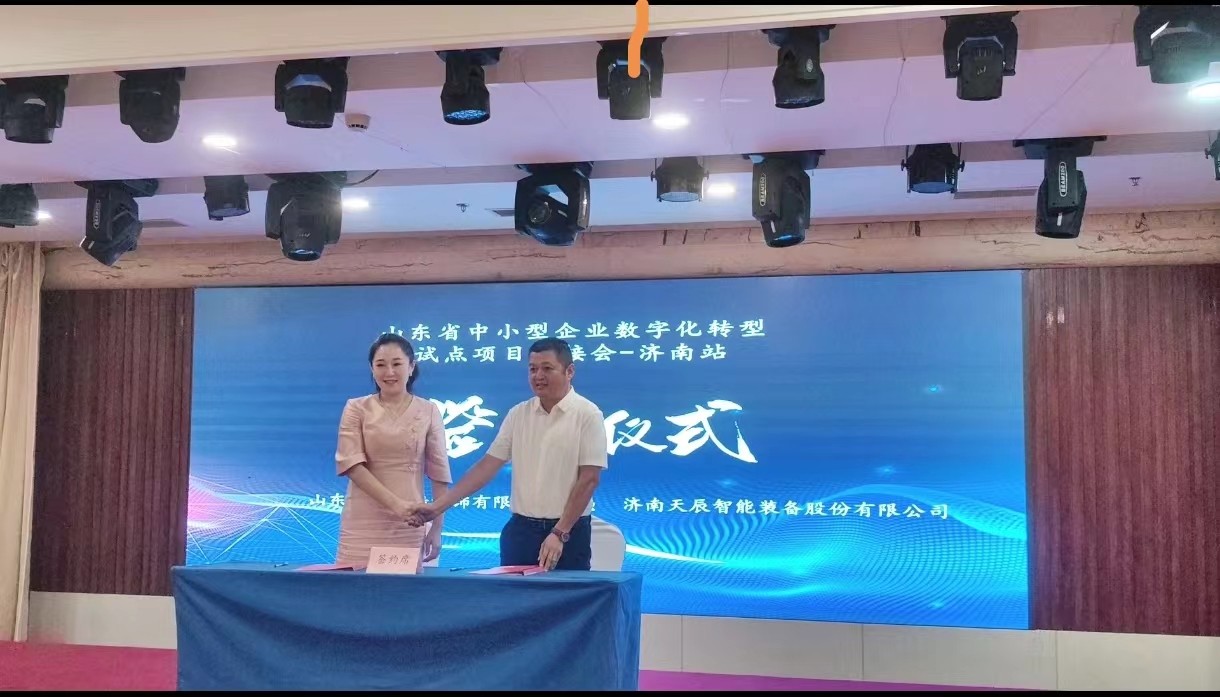 天辰股份助力山東省中小企業(yè)數(shù)字化轉(zhuǎn)型試點(diǎn)項(xiàng)目對接會(huì)濟(jì)南站7月17日, 山東省中小企業(yè)數(shù)字化轉(zhuǎn)型試點(diǎn)項(xiàng)目對接會(huì)濟(jì)南站成功舉辦。濟(jì)南天辰智能裝備股份有限公司(以下簡稱“天辰股份”)作為國家級數(shù)字化轉(zhuǎn)型試點(diǎn)平臺(tái)企業(yè)承辦了此次會(huì)議并作演講,分享數(shù)字