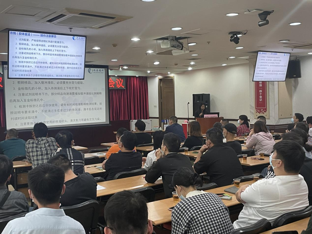 培訓(xùn)會(huì)議大致分為三大模塊,理論知識(shí)講解、快檢操作培訓(xùn)和現(xiàn)場(chǎng)互動(dòng)問(wèn)答??鞕z操作培訓(xùn)課上,廣州瑞森生物科技股份有限公司陳經(jīng)理為大家系統(tǒng)講解了農(nóng)殘、獸殘檢測(cè)操作流程,以及詳細(xì)介紹了儀器設(shè)備的使用方法和工作原理、日常維護(hù)管理等相關(guān)方面的注意事項(xiàng),同時(shí)講解了試劑和耗材的使用規(guī)范、儲(chǔ)存管理、日常維護(hù)等內(nèi)容。為參會(huì)人員提供了一場(chǎng)全面、細(xì)致、豐富的理論指導(dǎo)課。為了讓參與人員能夠更快掌握檢測(cè)培訓(xùn)核心知識(shí)點(diǎn),瑞森生物還準(zhǔn)備了現(xiàn)場(chǎng)問(wèn)答題目,以此幫助參會(huì)人員快速提升食品安全專業(yè)知識(shí)水平,更快掌握快檢技能以適應(yīng)崗位工作需求。