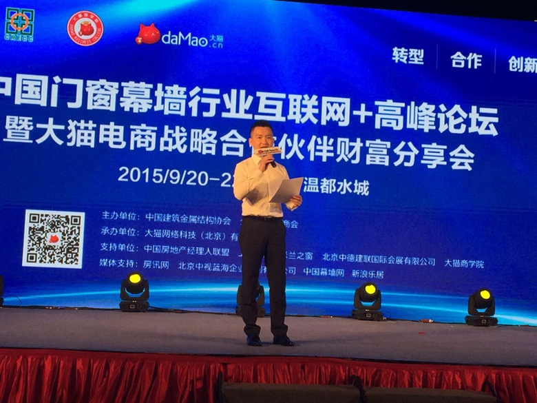 隨著全球趨勢的發(fā)展和政府的大力倡導,互聯(lián)網(wǎng)+正如火如荼地席卷所有行業(yè)。如今電子信息化時代,互聯(lián)網(wǎng)+的發(fā)展已經(jīng)有目共睹。2015年9月20日-22日在北京溫都水城,大貓電商與中國建筑金屬結(jié)構(gòu)協(xié)會、全聯(lián)房地產(chǎn)商會共同舉辦了“2015中國門窗幕墻行業(yè)互聯(lián)網(wǎng)+時代高峰論壇暨大貓電商戰(zhàn)略合作伙伴財富分享會”。天辰股份作為合作會員單位,應(yīng)邀參加了此次論壇會。